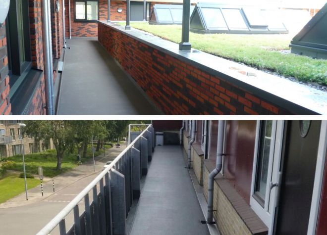 Dans certains cas, une coursive sert également de toit pour l’espace dessous. Une étanchéité fiable et une bonne isolation sont essentielles pour protéger non seulement la construction mais aussi l’espace dessous. Grâce au système Triflex BIS, vous avez en main une solution regroupant le rehaussement, l’isolation et l’étanchéification de balcons, terrasses et coursives dans la couleur de votre choix.