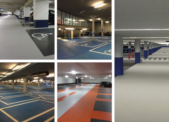 Les parkings ou garages souterrains voient rarement la lumière du jour, ces espaces peuvent dès lors sembler désagréables ou sombres. Étant donné que le parking est souvent la première impression que vos clients vont avoir, vous avez envie de les recevoir dans un bel environnement. Pour ce faire, vous pouvez utiliser le système Triflex UCS.
